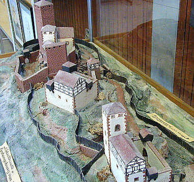 Ansicht der Anlage von Norden Ganerbenburg aus drei Abschnitten, von denen der hintere (südlichste) am stärksten befestigt ist.