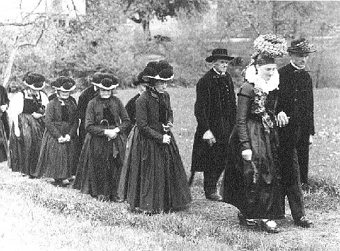 unverheirateten Frauen mit dem roten Bollenhut folgen.