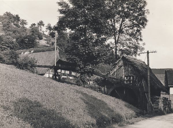 Hof in Hanglage mit gemauertem Keller, im Hauptgeschoss links
