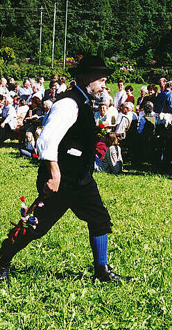 Gutacher Hochzeitszugim Schwarzwälder Freilichtmuseum Vogtsbauernhof Der Hochzeitslader Er übernimmt im Auftrag der Eltern von Braut und Bräutigam die Vorbereitungen und die Durchführung des Hochzeitsfestes, er lädt die Gäste ein und bittet zum Tanz.