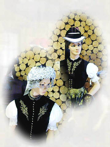 Trachten aus dem Glottertal: Mädchenkranz (unten) und weiß gekalkter Strohhut (oben)