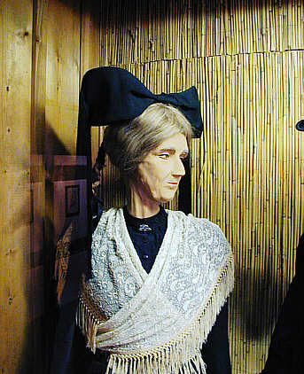 Frau mit Schleifenhaube und über der Brust gekreuztem Spitentuch
