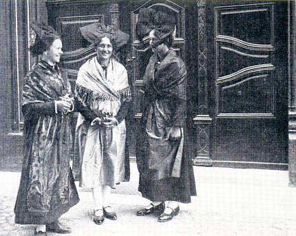 Oberrheinische TrachtenTrachtenträgerinnen in Kirchhofen an Fronleichnam 1939 Die Kirchhofener Tracht wurde Anfang der 30er Jahre von Wilhelm Fladt unter großem Einsatz wieder belebt, überlebte allerdings den Krieg nicht |