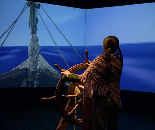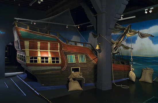 Am Steuerrad übernehmen die kleinen Piraten das Ruder. © Historisches Museum der Pfalz Speyer