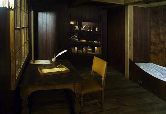 In der Kapitänskajüte liest der Kapitän aus einem Kaperbrief. © Historisches Museum der Pfalz Speyer