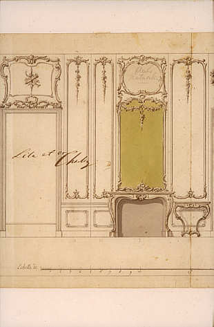 Wandaufriss mit Stuckdekoration im Vorzimmer von Schloss Solitude