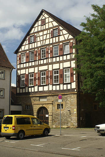 "Försterei" am westlichen Ende des Schlossbezirks mit steinernem Sockel und Fachwerkaufbau, 16. Jahrhundert.