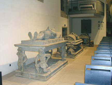 Adelsgräber: Tischgrabmal des Grafen Albrecht von Hohenlohe-Langenburg (+1575), dahinter das der Herzogin Johann Elisabeth, geb. Pfalzgräfin bei Rhein (+1601)
