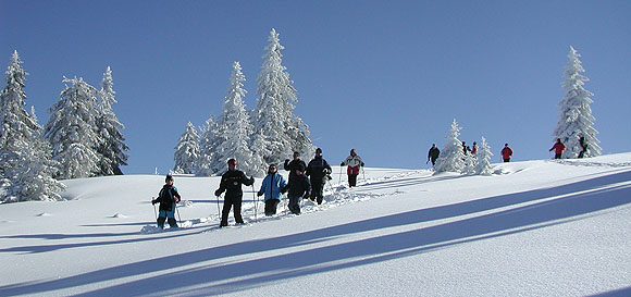 Wer gerne selbst die ersten Spuren durch den frischen Schnee ziehen will, der sollte sich im Schneeschuhwandern versuchen. Im Naturpark Südschwarzwald gibt es zahlreiche gut und gleichzeitig naturverträglich ausgeschilderte Schneeschuh-Trails, die durch die herrliche unberührte Winterlandschaft führen. Geführte Schneeschuhwanderungen mit spannenden Infos rund um das Naturschutzgebiet Feldberg bietet das Naturschutzzentrum Südschwarzwald an. Für Gruppen sind diese ab sofort buchbar. Feste Termine finden je nach Schneelage voraussichtlich von Ende Dezember bis Ende März bei geeigneten Bedingungen jeden Sonntag um 12 Uhr statt – rechtzeitige Reservierung empfohlen. Der Start ist am Haus der Natur am Feldberg. Dort kann man sich auch Schneeschuhe für eigene Unternehmungen ausleihen. Reservierungen beim Naturschutzzentrum unter 07676 / 9336-30.