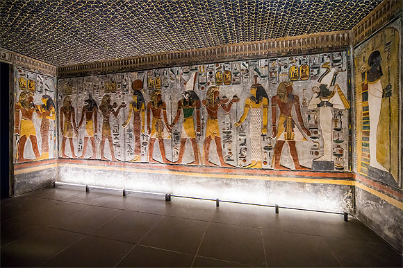 Als der Italiener und Abenteurer Giovanni Battista Belzoni das Grab Sethos’ I. im Tal der Könige 1817 entdeckte, war er fasziniert vom einwandfreien Erhaltungszustand der Wanddekoration. Er dokumentierte in Aquarellen detailgetreu die gesamte Grabdekoration, was sich später für die Rekonstruktion des Grabes als Glücksfall erweisen sollte. Denn Plünderungen und unsachgemässe Forschung – später auch Massentourismus und geologische Verschiebungen – führten zu einer teilweisen Zerstörung des Pharaonengrabes. Erstmals musste es deswegen 1990 geschlossen werden und war in der Zwischenzeit nur noch sporadisch offen.
