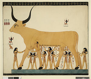 Links oben: Die Himmelskuh, Raum M. Aquarell von Henry Salt. The Salt Watercolours. AES Ar279. © The Trustees of the British Museum