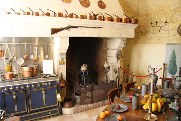 Unten: Küche mit offenem Herd