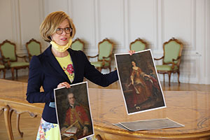 Unten: Konserbatorin Dr. Uta Coburger bei der Präsentation des jüngsten Restaurierungsvorhabens: Zwei Gemälde aus der Münchner Alten Pinakothek