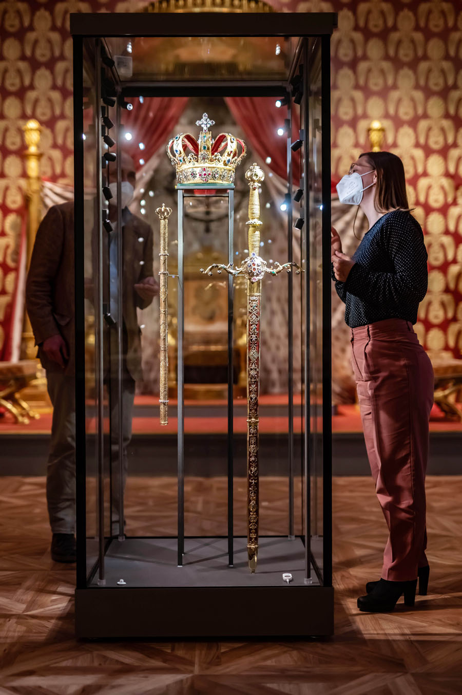 „Das Thron-Ensemble und die Kroninsignien gehören zu den absoluten Höhepunkten unserer Sammlung. Durch die Neupräsentation nach historischer Vorlage machen wir unseren Besucherinnen und Besuchern die Begegnung mit den Herzstücken der badischen Landesgeschichte wieder möglich. Jeder, der Karlsruhe und das Schloss besichtigt, sollte diesen bedeutenden Exponaten begegnen“, so Eckart Köhne, Direktor des Badischen Landesmuseums.