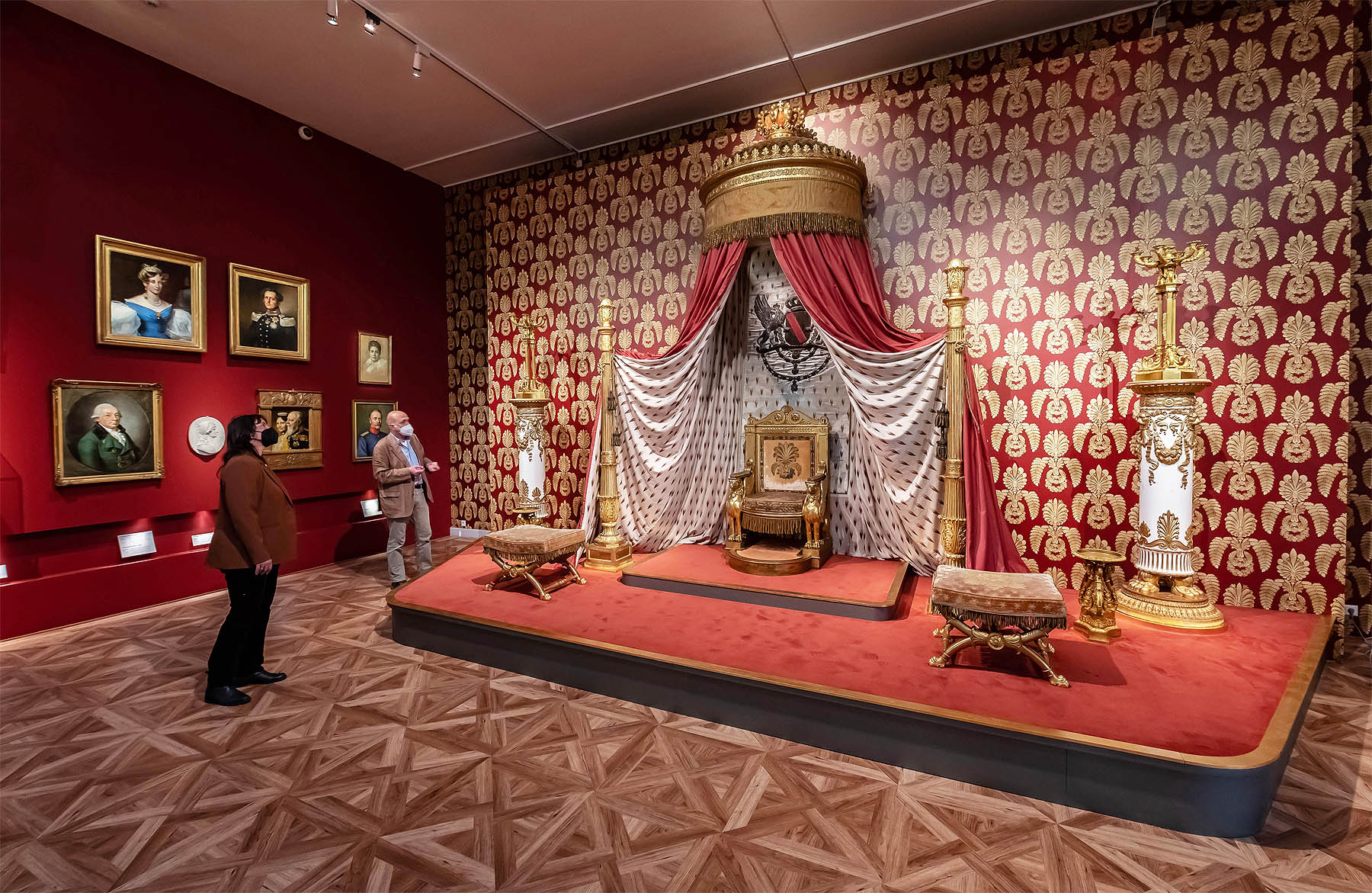 Blick in den neu eingerichteten Thronsaal. Impression Thron-Ensemble und Fürstengalerie