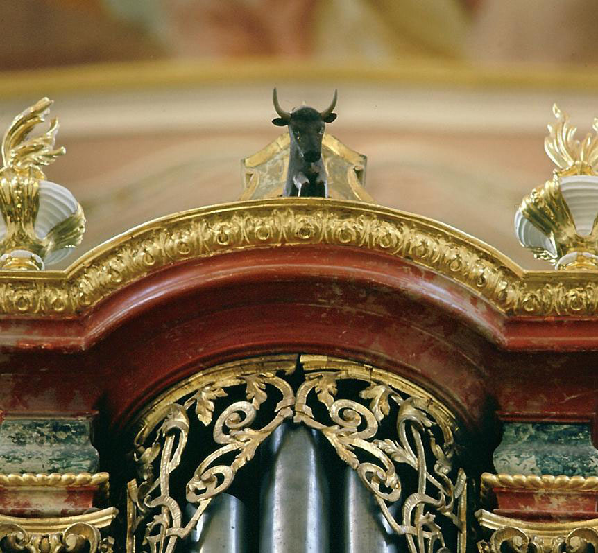Kloster Ochsenhausen, Gehäuse mit dem Wapentier des Klosters, dem Ochsen. Foto: Stadtverwaltung Ochsenhausen