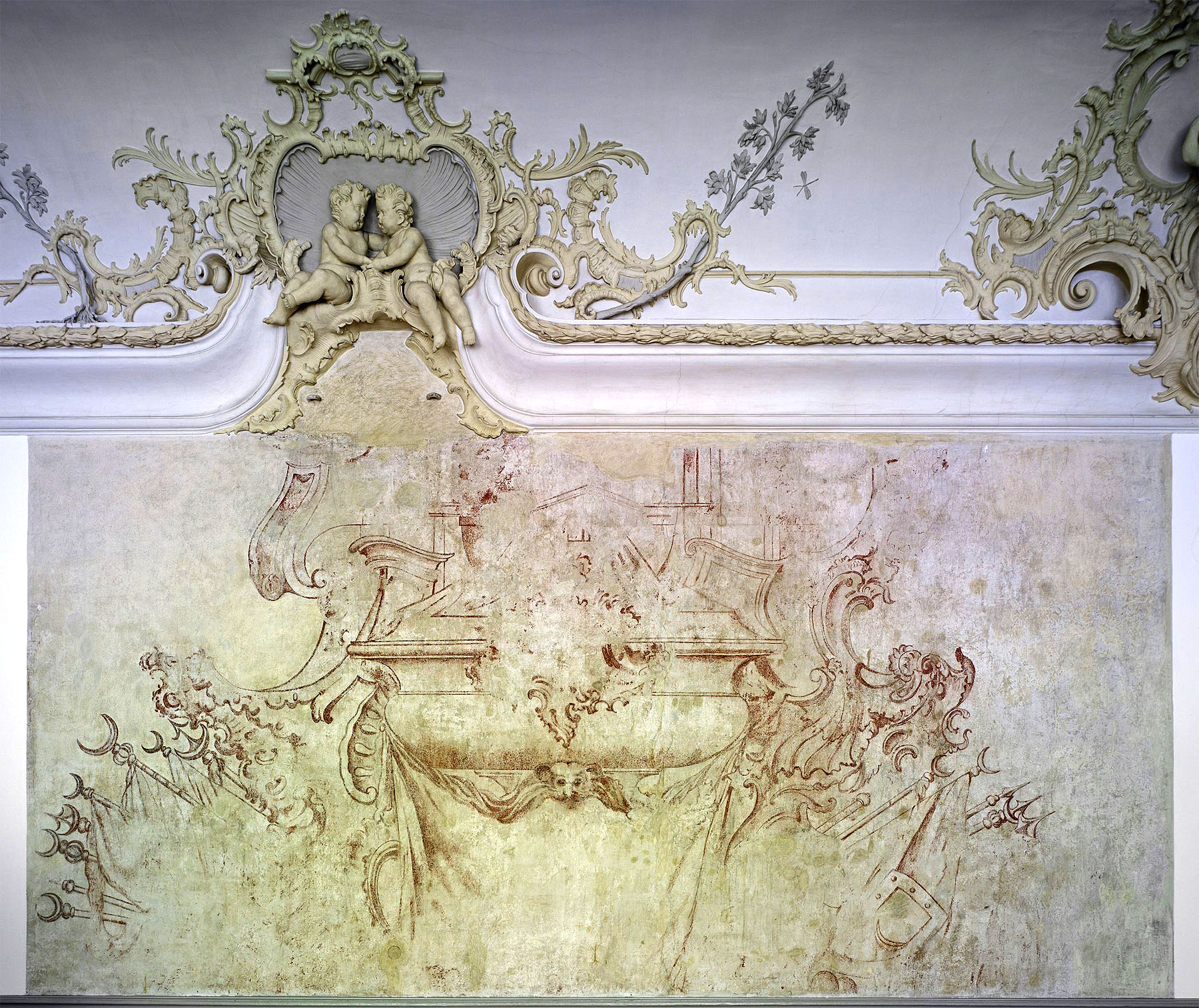 Schloss Rastatt, Vorzeichnung und Stuckornament aus der Zeit des Markgrafen Ludwig Georg Simpert. Foto LMZ/SSG