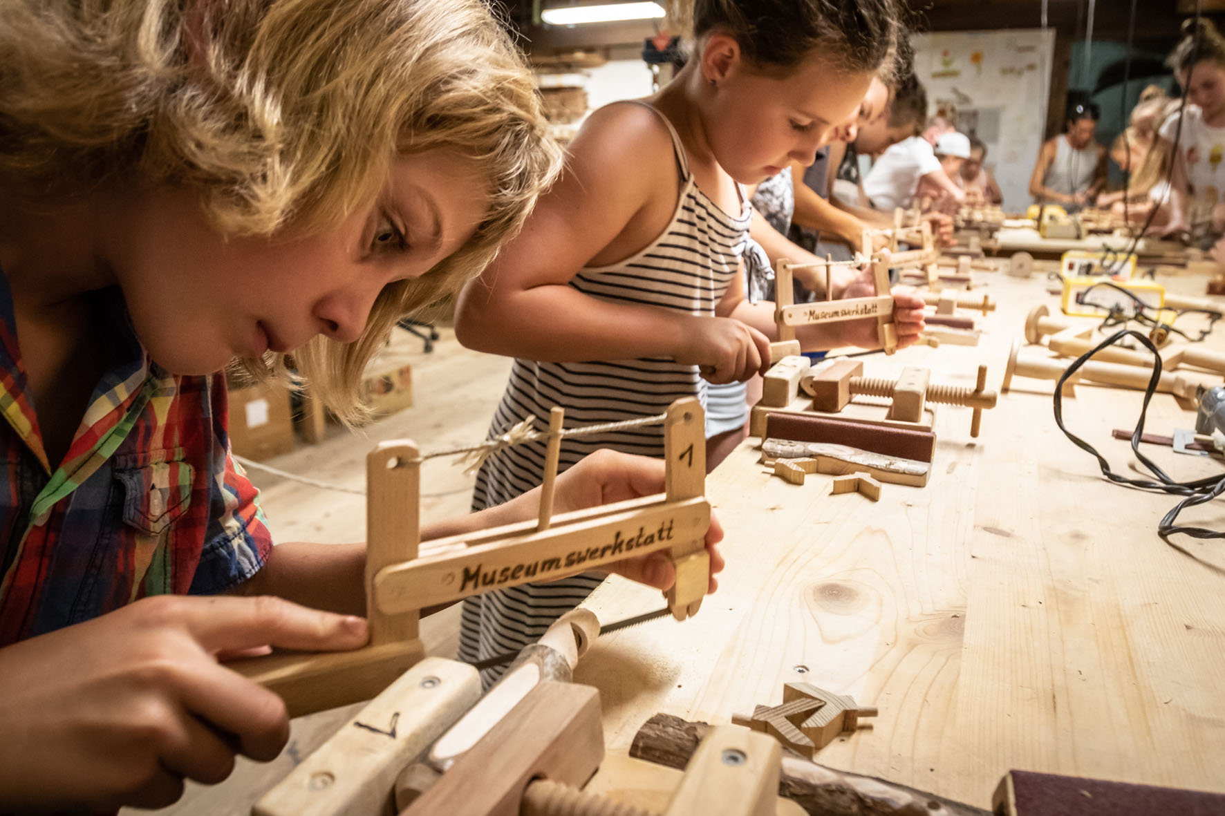 Erwachsene können dort mit Terminbuchung wieder unter fachkundiger Anleitung der Familie Sonja und Ewald Lehmann aus Wolfach verschiedene Werkstücke aus Holz fertigen. Von Schlüsselborden über Türklopfer bis hin zu Kuckuckspfeifen, für jeden Geschmack ist das Passende dabei. Von 11 bis 16 Uhr finden künftig im Abstand von 30 Minuten Werkeinheiten für je eine Familie bzw. einen Haushalt statt.