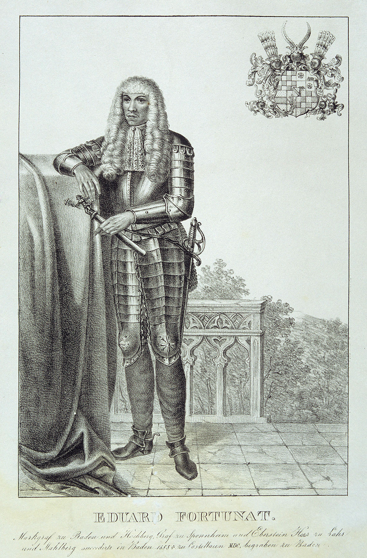 Seit 1535 waren die Markgrafen von Baden in zwei Familien geteilt: die Linien Baden-Baden und Baden-Durlach. Von den Baden-Badenern, deren Stammvater Bernhard III. war, hatte sich 1556 mit Eduard Fortunats Vater eine Seitenlinie abgespalten: die Markgrafen von Baden-Rodemachern. Rodemachern, im heutigen Lothringen gelegen, gehörte zum Streubesitz der Markgrafen. Als die Hauptlinie Baden-Baden 1588 im Mannesstamm ausstarb, kam Eduard Fortunat an die Regierung: Bis 1594 regierte er die Markgrafschaft Baden-Baden.