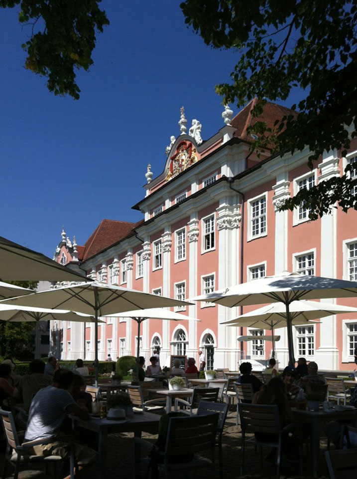 Neues Schloss Meersburg, Café seeseits auf der Terrasse über dem See. Foto: kulturer.be