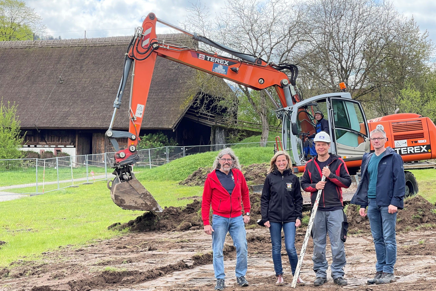 Während das historische Rebhaus von 1775 in einer Halle bei der ausführenden Firma JaKo Baudenkmalpflege in Berkheim, Landkreis Biberach, umfangreich restauriert wird, finden zeitgleich in Gutach die Baumaßnahmen zur Vorbereitung für die Gebäudeversetzung statt. Dafür werden der Boden am zukünftigen Standort auf dem Museumsgelände abgezogen sowie eine Grube für den Keller ausgehoben. Das Aushubmaterial wird dabei zwischengelagert, um es später für die Modellierung eines Weinbergs beim Ortenauhaus nutzen zu können. Die Bodenarbeiten werden von der Firma Kaltenbach aus Hornberg ausgeführt, für die Planung ist das Büro Faktorgrün in Rottweil verantwortlich.