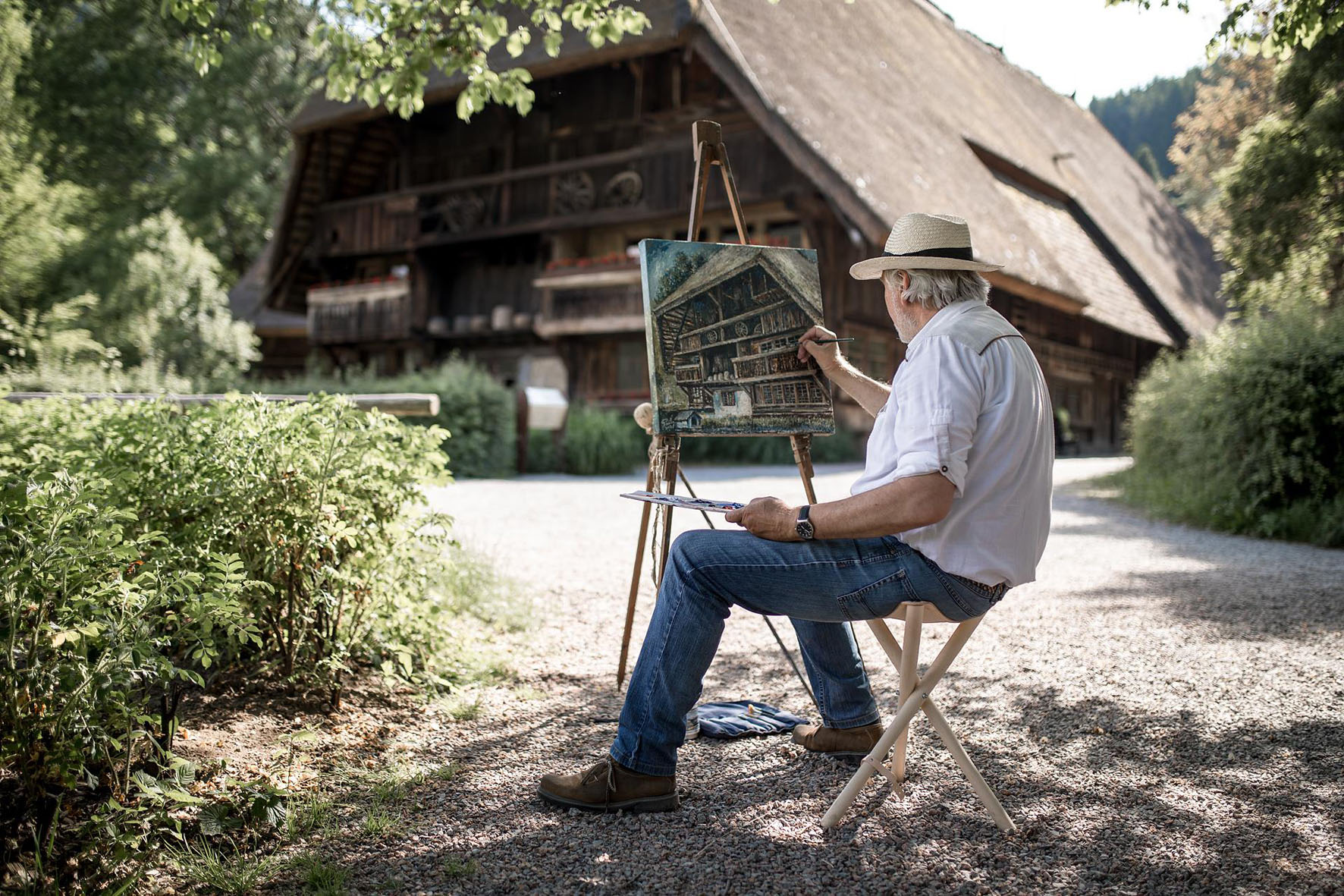 Der erfahrene Kunstmaler Wolfram Paul aus Altensteig weist wenige Tage später, am Samstag, den 18. Juni, in die Welt der Freilichtmalerei ein. Die Teilnehmer erlernen von 13 bis 17 Uhr die Grundzüge der Landschaftsmalerei und beginnen ihr eigenes Werk unter Inspiration der bekanntesten Schwarzwaldmaler in Gutach: Wilhelm Hasemann und Curt Liebich.