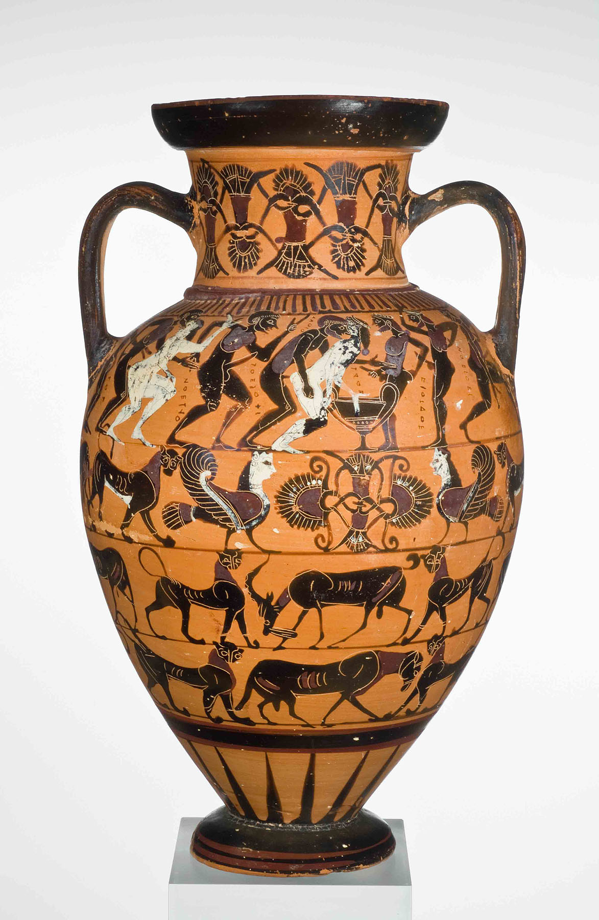 Das Symposion läuft aus dem Ruder. Attisch schwarzfigurige Amphore, Ton, 560–550 v. Chr. Staatliche Antikensammlungen München, Inv. SH 1432. © Staatliche Antikensammlungen und Glyptothek München, Renate Kühling