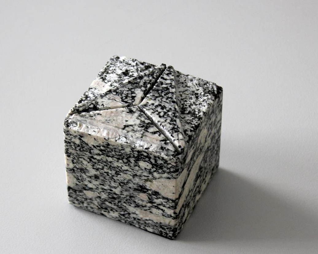 „Überreicht anläßlich der Einweihung der Fußgängerzone am 2.7.1977“ lautet die knappe maschinenschriftliche Aufschrift des kleinen, leicht vergilbten Schildchens auf der Unterseite des Steines. Der Würfel mit einer Kantenlänge von je acht cm ist aus schwarz-weiß gesprenkeltem Tonalit gefertigt. Seine Oberseite ziert als Gravur der dem Frankenthaler Stadtwappen entlehnte Eckstein.