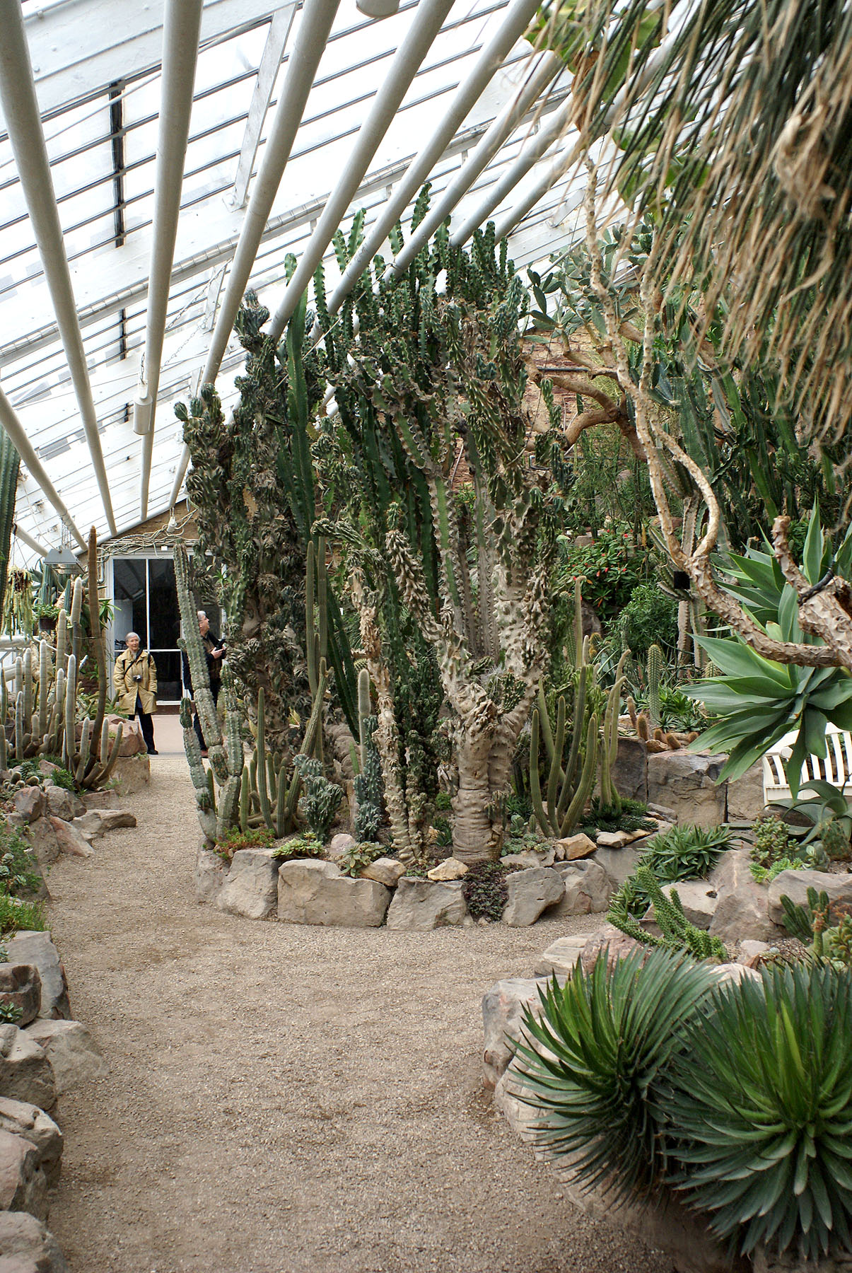 Die eindrucksvollen Glashäuser des Botanischen Gartens stammen aus dem 19. Jahrhundert und wurden ursprünglich vom Architekten Heinrich Hübsch entworfen. Nach dem Wiederaufbau in den 1950er-Jahren wurden sie als Schauhäuser für die Öffentlichkeit eingerichtet. Die historischen Gewächshäuser aus Metall und Glas wurden aufwendig saniert und 2018 wiedereröffnet. Seither orientieren sich Gestaltung und Pflanzenauswahl exakt an den historischen Vorlagen aus der zweiten Hälfte des 19. Jahrhunderts.