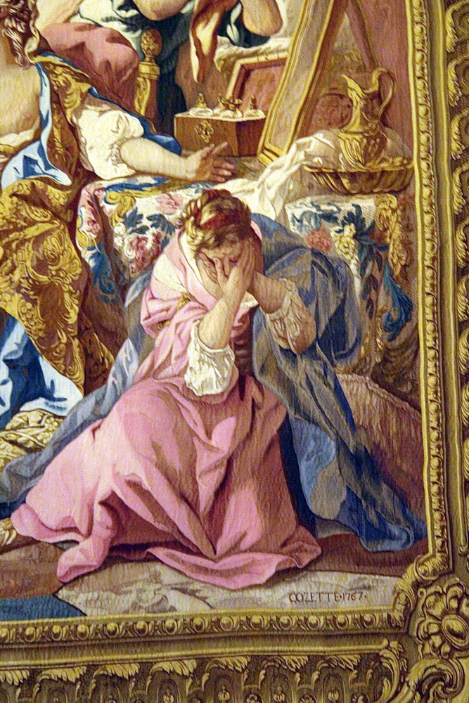 Schloss Mannheim, Ausschnitt aus der Folge der Jason-Teppiche: Trauernde Frau. Foto: kulturer.be