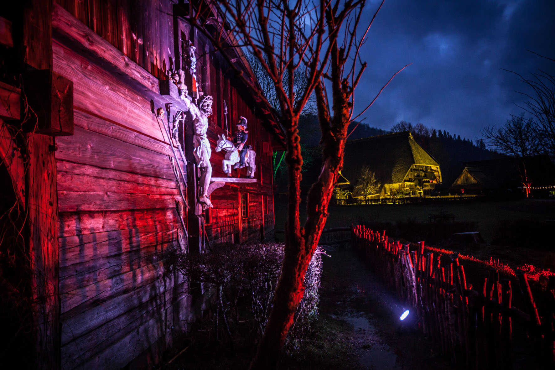 (fmv) Eine kunstvoll ins Licht getauchte Schwarzwälder Häuserlandschaft im stimmungsvoll beleuchteten Ambiente der historischen Schwarzwaldhöfe erwartet die Besucher beim diesjährigen Weihnachtsdorf am dritten Adventswochenende im Schwarzwälder Freilichtmuseum Vogtsbauernhof in Gutach. Auf dem sieben Hektar großen Museumsgelände verteilen sich vom 15. bis 17. Dezember rund 40 Hütten und Stände mit traditionellem Handwerk und heimischen Produkten. Die imposanten und beleuchteten Schwarzwaldhöfe fügen sich so zu einem abendlichen Weihnachtsdorf, das seine Gäste zum Flanieren einlädt.