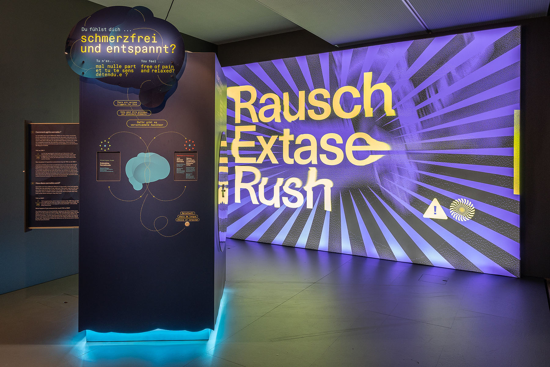 Was genau ist Rausch? Warum streben wir nach ekstatischen Gefühlen und was fasziniert uns so daran? Die Ausstellung untersucht das Phänomen «Rausch» und dessen Auswirkungen. Auf einer multimedialen Reise begegnen die Besucher:innen geschichtlichen Hintergründen sowie den Möglichkeiten und Risiken eines Rausches. Dabei ist die grosse Frage, warum unsere Gesellschaft so widersprüchlich mit diesem Phänomen umgeht.