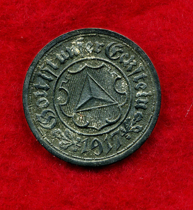 Das Objekt stellt eine kleine Erweiterung der aktuellen Sonderausstellung des Erkenbert-Museums dar, in der ebenfalls einzelne Notmünzen im Themenabschnitt „Schwere Zeiten“ gezeigt werden. Hierbei handelt es sich um eine meist lokal herausgegebene Alternative zur regulären Währung in Krisenzeiten, der die Bevölkerung oft sogar mehr Vertrauen entgegenbrachte. Eine Besonderheit besteht in den Motiven der Vorderseite, die oftmals lokale Bezüge aufweisen. Schon während des Ersten Weltkrieges hatten die Rüstungsausgaben die Stabilität der Reichsmark stark beinträchtigt. Die weitere wirtschatliche Entwicklung nach Kriegsende verstärkte diesen Prozess, der seinen Höhepunkt im Inflationsjahr 1923 erreichte. Bekannt sind bis heute die Filmaufnahmen von Menschen, die große Mengen an Geldbündeln in Wäschekörben zum Markt tragen mussten, um einfachste Lebensmittel zu kaufen.