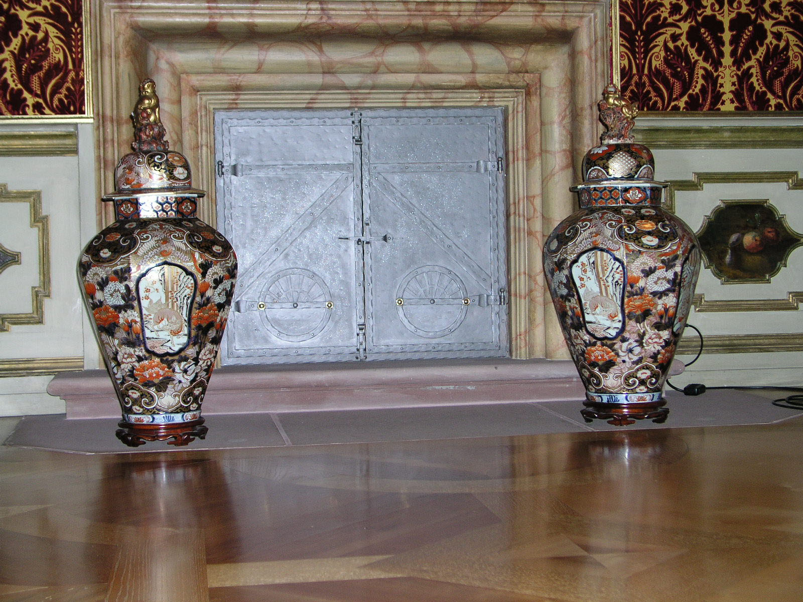 In zahlreichen Räumen finden sich Kamine oder Kanonenöfen. Diese barocken Heizkörper aus Eisen setzen sich aus mindestens drei Bauteilen zusammen: Ganz unten ist der Brennraum, in den die Diener das Holz einlegen konnten. Darüber folgt der Rauchabzug mit dem Kaminabgang. Die Ofenabdeckung bildet den Abschluss. Aufbau und Material machten die Öfen äußerst stabil. Häufig waren sie dekorativ gestaltet und reich verziert mit Wappen, Tier- und Blumenmotiven. Im Residenzschloss handelt sich um sogenannte Hinterladeröfen, die nicht im Raum der Aufstellung, sondern von einem separaten Raum aus befeuert wurden. Diese Art von Öfen ermöglichte es, den beheizten Wohnraum frei von Rauch, Feuermaterial und Schmutz zu halten. Ein weiterer Vorteil: Die Herrschaften blieben vom Dienstpersonal ungestört.