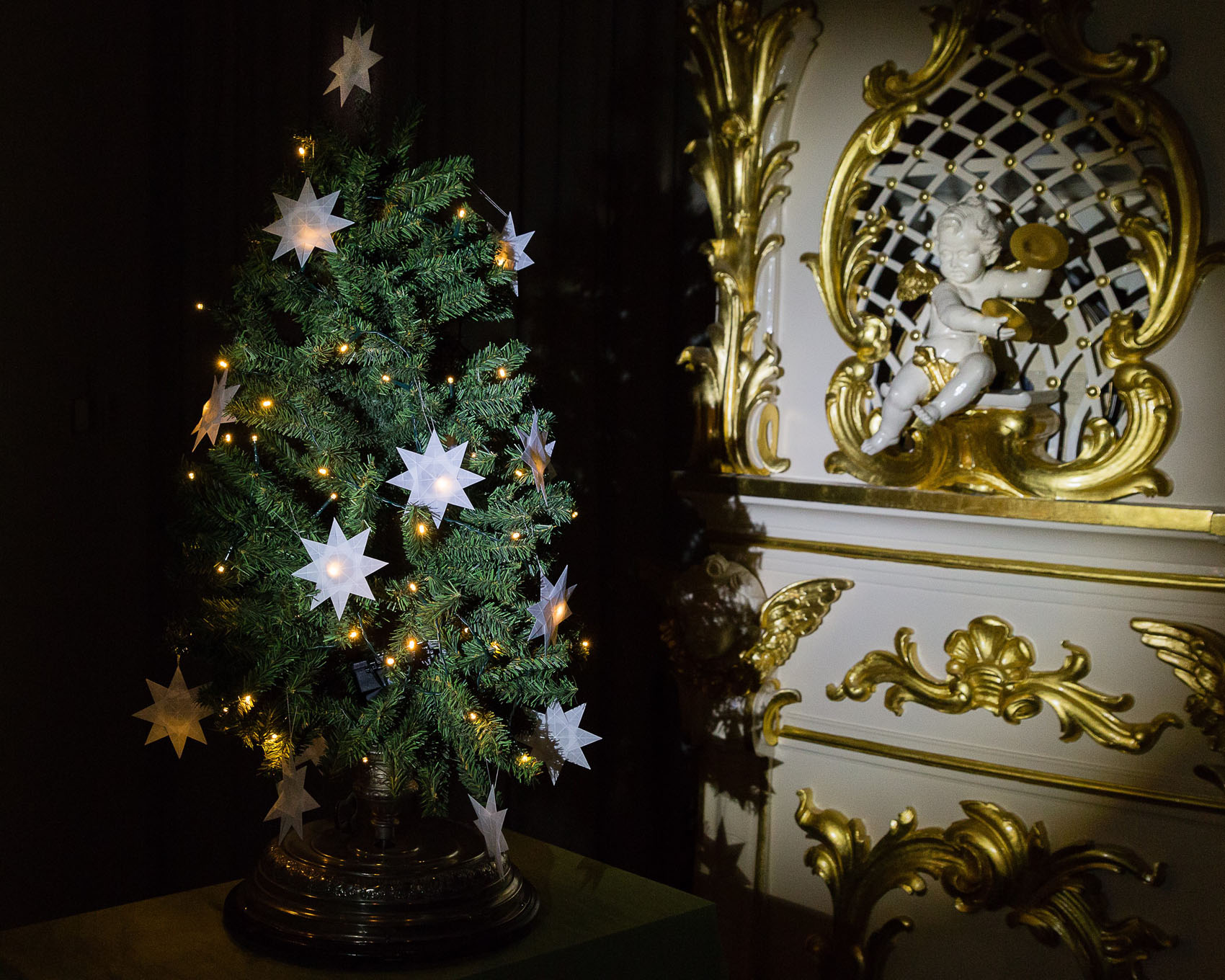 Weihnachtlich geschmücktes Tannenbäumchen im Deutschen Musikautomatenmuseum. Foto: Bad. Landesmuseum.