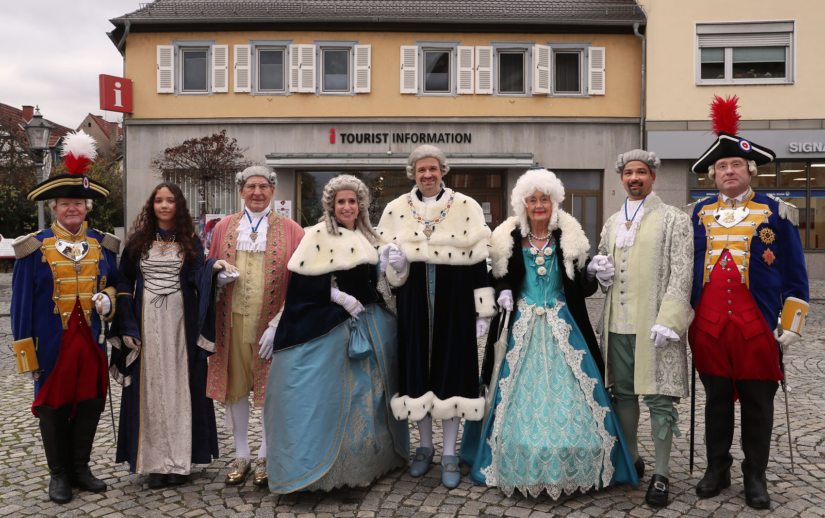 Der Kurfürstliche Hofstaat vor der Tourist Information Schwetzingen. Foto: Doro Lenhardt / Stadt Schwetzingen