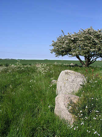 Steinsetzung um den nördlichen Teil der Grabanlage. Vorn das "Hünenbett".