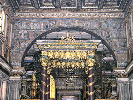 zum Triumphbogen. Er ist mit dem Mosaik des 5. Jahrhunderts