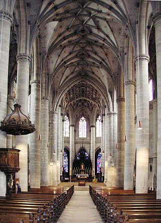 gotischen Hallenkirche ab 1300 auf Fundamenten eines Vorgängerbaus