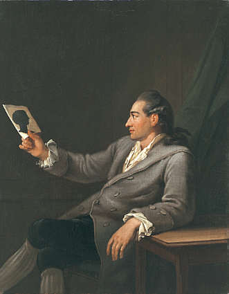 Georg Melchior Kraus: Johann Wolfgang Goethe, eine Silhouette betrachtend, 1775, Öl auf Leinwand. Sparkassen-Kulturstiftung Hessen-Thüringen / Stiftungen Weimarer Klassik und Kunstsammlungen, Goethe-Nationalmuseum