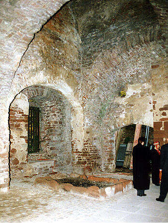 Bild unten: Der Rauchfang im Bereich des ehemaligen Zwingers, dahinter die Südwand des Ottheinrichbaus und der Ansatz des Apothekerturms.